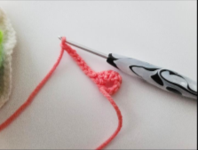 1. sc in 2nd ch from hook, 33 sc, inc3 in last chain, working on the opposite side of the chain: 33 sc, inc= 72